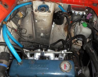 | ピットロードに入庫し 作業開始前の儀式?が↑コレです。フードバーは邪魔で開く角度が狭く 作業性悪いので ピットロードで作業するサニーは全部このようにします。作業性良くがメインですが、TSサニーは全車このレイアウトですので、せっかく縁あってTSサニー屋に入庫しましたからTSサニーの雰囲気を盛り込む、ってのも有ります。エンジン脱着時にイチイチ ボンネット外さずにも済みます | ||