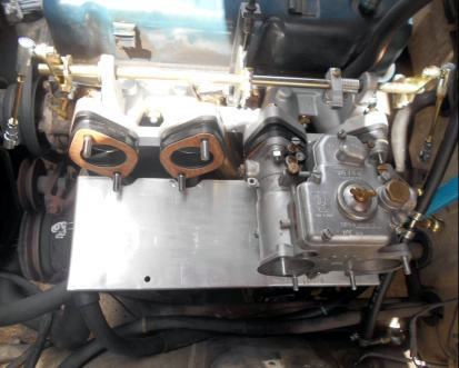 ヒッ替えしてます。 タコ足の真上にキャブが付くカウンターフローにヒートプレートは必須パーツ。コレ付けないと 真夏の炎天下 パーコレーション起こし走れなく成っちゃいますからネ |