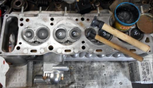 | 内燃機屋からバルブガイド入れ替えバルブシートカットが仕上がって来ましたので、バルブ擦り合わせを行いヘッド組み立てに進みます。 | |