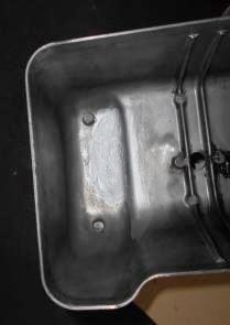 | エンジン掛けたらロッカーカバーに気ずかないくらいのクラックが入っており そこからOIL漏れ。裏側からリューターで削り凹ませアルミパテ補修。夏ならすぐ乾くんだけど 冬は中々乾かない | ||