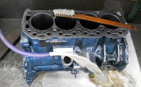 | この状態でボーリングに出すのが普通でしょうが、Pitroadチューンは全て 水メクラ栓サイドx3ケ所&リヤx1ケ所を外し数十年の間に蓄積したヘドロをかき出し新品メクラ栓を取り付けます。プライベートチューンでは まず行わないであろう ウォーターパイプ、ブローバイパイプ、レベルゲージガイドを筆頭に、フロントのスタットボルトからリヤのノックピンまで全て脱着しますので もう一手間掛けます。コレをやったからと言って1馬力パワーUPする訳ではありませんが、一目見て 素人が組んだエンジンじゃあ無いんだろうな?に 見せるためです(笑) | ||