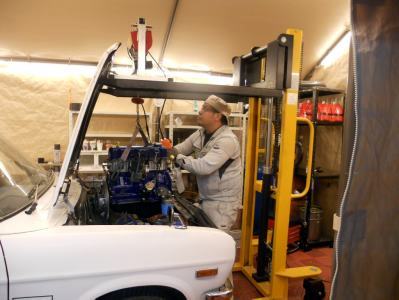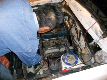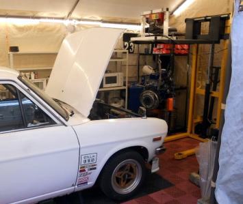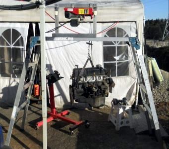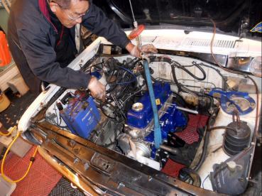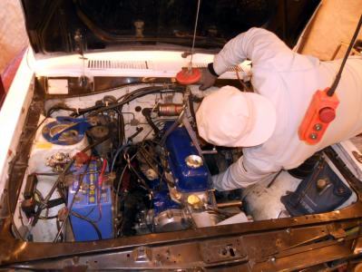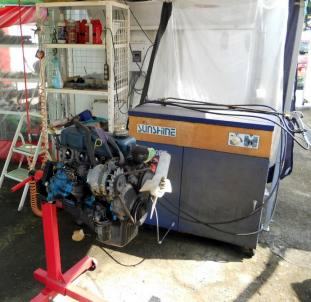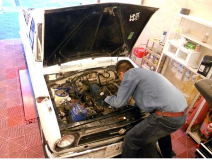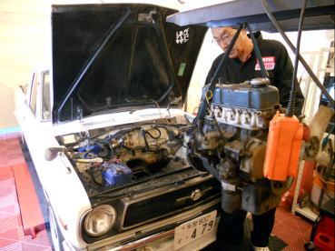| 1/11 エンジン載せ替え作業着手 TSサニーSTAFFがやってくれてます 私がやるより早いです(笑) |