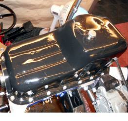 | このA12オイルパンも 大きい22mmドレンボルト付けたまま 約100kg近いエンジンを床に直置きしちゃってますので ドレンボルト凸部分でOILパン凹ましちゃってます、、、再び数十年物のゴミ状態OILパンを洗浄・レストア、プレスで凹みを戻し、灯油を入れ、一晩置き 漏れチェックします。数十年物ゴミ状態OILパン洗浄は半日で終えられるレベルではありませんが、新品OILパン生産廃止ですから仕方ない、このように時間が掛かる事は ご了承下さい。 | ||