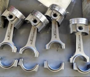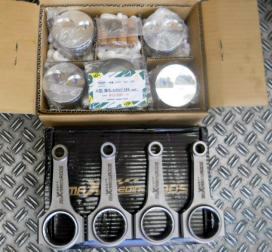 再度 内燃機屋に外注依頼。 右が亀有A12-77Φ鍛造ピストンと 隣りがA12-H-Beamコンロッド |