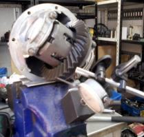 | 昭和のH165 LSDでは無く 最新バージョンLSDを組み込みますのでアルミデフキャリアの削正加工が必要、何度も々脱着を繰り返し、当たる箇所を削ります。新規組み込みですのでバックラッシュ調整も サイドB/g左右脱着を繰り返し、アジャストシム調整を繰り返しベストクリアランスにします。新規製作は オーバーホールの数倍 時間を要します | ||