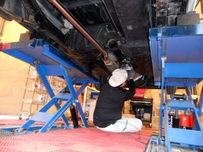 | ミッション搭載直前までチェックシート敷きOIL漏れチェック ミッション降ろしの時 エンジン分離キツかった。ノックピンが錆てフロントケースと固着しE/gブロックから分離! ノックピン磨きE/gブロックに打ち込んどきましたので、装着はスムーズかと? 程度良い 綺麗なサニトラだが、旧車ブームで無ければ とっくに解体屋行きのクルマ、見えない所は 随所に数十年物の傷みが見られます、どのサニトラもです、、、 |