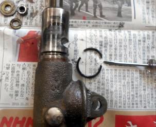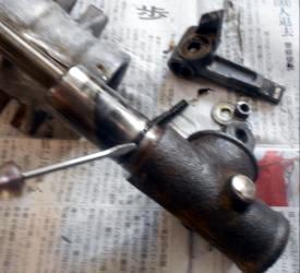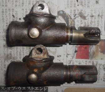 変摩耗した部品から推測できる。ミッションは立てた状態での放置が普通なので南アフリカ5速は中身のギヤが錆びだらけがほとんどだが、コレは中身は無事でガイドに錆が集中した珍しい例。ガイドは肉盛り溶接し手仕上げ加工で再生、見た目は良く無いが機能は果す。↑