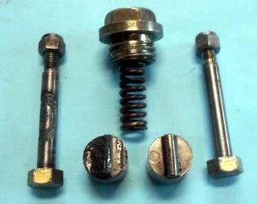 写真右の長い特殊ボルトが60A 5速のみガイドの上側を貫通、他の60は全て下側を貫通、60型4速ガイド流用も考えたが