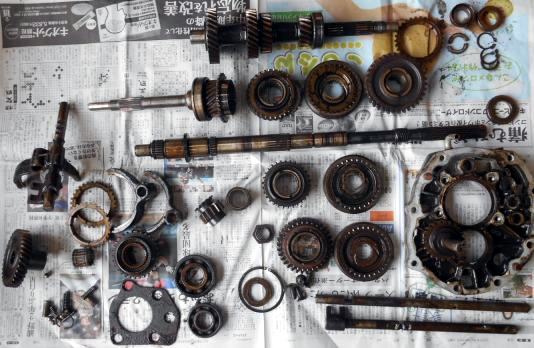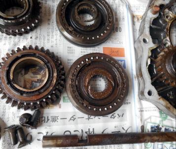 一応 歯数を数えギヤ比を確認。この5速ミッションのギヤ比はB310と一緒でした とりあえず中味を確認しましたが、お預かりした時にお伝えしましたようにただ今大入り満員、オーバーホール着手は約1週間後からになります、しばらくお待ち下さい。 |