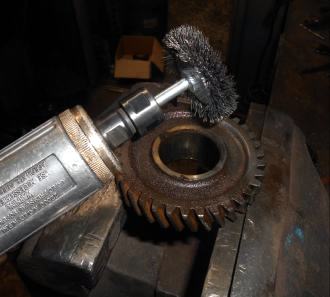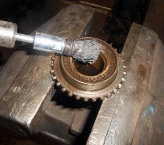 | 錆び取りと格闘中 中古バネット5速を買い、分解、パーツ取り外し、移植、の工賃と比較し、こちらの方が安価に済むと判断し錆び取りを選択。コ〜ユ〜時はお客の方はどっちでもイイんだよネ? 自分が賭けに失敗したパーツだから 多少掛かってもしょうがない、諦めと、覚悟を決めるお客がほとんど、メンティナンス側の方が ド〜やれば安く出来るか?を考えるもの ほとんど終わった、あともう少し |