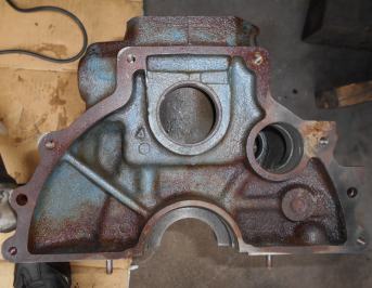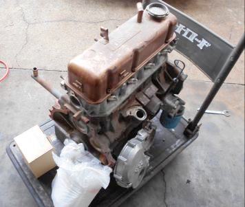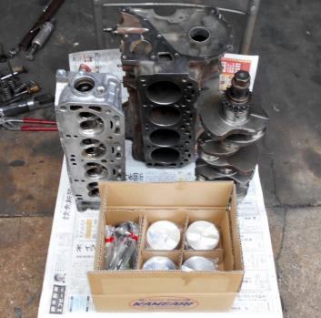 | 本日 完成!・・・の はずだったが、、、A型サニー店なのにフロントカバーガスケット在庫切れの失態、とりあえず仮止め。明日 入荷すれば1時間ほどで終るが、日産に部品が無く