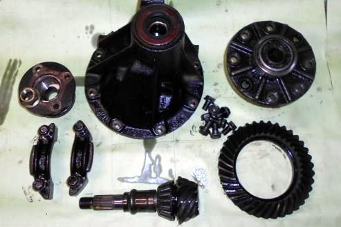 ファイナル3.700。大したモンだ このハイギヤードファイナル3.7見つけるだけでヤル気が伺える。お宝H165デフ2個とゴミH165デフ2個とA14ノーマルエンジンを持って来た、持参ブツでヤリクリし