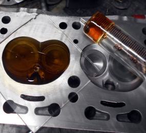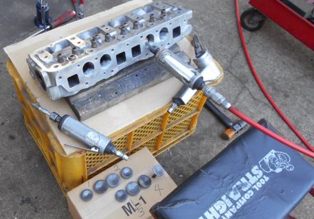 | 38/32Φ-8mmビッグバルブ、バルブシートカット ただ光らすだけの なんちゃってポート研磨ですがチューンドエンジンに見えるようサービス。 マニホールド面 水穴処理もタップを立てシズミプラグを埋め綺麗に処理してあります。何時でもTOMEIインテークマニホールドに代えられるようスタットボルト穴新設。 |