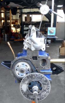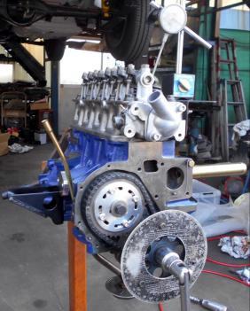 | バルブタイミング調整 エンジン本体は完成。後はオイルパンやフロントカバーなどの付随パーツを掃除して付けるだけ ←コレが一番大変、エンジン組むなんてのは簡単、来週早々には全て終わる予定です。 |