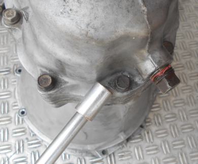 | ケース止めてるボルト8本中7本は緩んだが 1本だけネジ山が舐めててメガネorボックスレンチが使えない、オーナーもご存じでしょう? ココはまだマシな方で 他の箇所のボルトは全部折れちゃうんじゃあないか? と 思うくらい程度悪いです。 ボルトをぶった切っちゃっても大丈夫な箇所だが、後で一応悪あがきして見っか? | ||