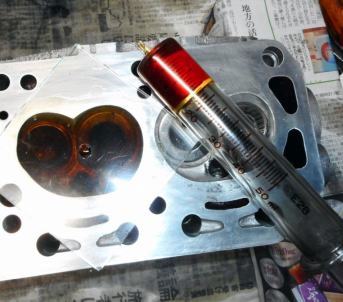 | ポート凸凹修正、バルブ洗浄・鏡面、バルブ擦り合わせ、燃焼室容積測定。37/30Φ-8mmノーマルバルブの程度が良かったので38/32-8mmビッグバルブへの変更は中止 | ||