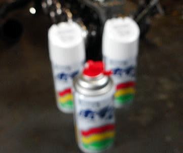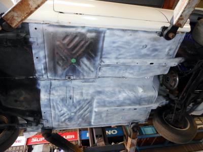 | 下回り塗っといてちょうだいのリクエスト、ご想像どうり一番不得意な分野、油っぽいのは得意なんですけどネ。板金屋に外注依頼するほどのモンでも無いので自分で塗るか?とホームセンターのカー用品売り場に行くと普通のプラサフの横にホワイトプラサフってのが置いて有ったので
