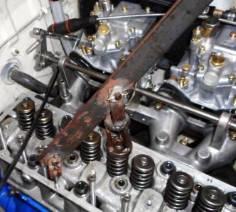 | ふざけて作用角の広い 超ハイリフトの素材削り出しカム入れたはイイが、バルブスプリングを付いてたやつでイイか?と横着したツケが廻って来ちゃった。ハイリフト過ぎてバルブスプリングが密着しちゃうのでオフセットしてるOpt'バルブリテーナーへ交換方々バルブスプリングもレース用type-Cに交換。スチール製だけどこのOpt'リテーナー貴重です、今でもTSメカジジイ連中は欲しがります。普通バルブスプリング交換はシリンダーヘッドを外して行いますが
