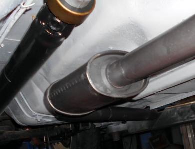 昭和のマフラーです。21世紀マフラーと比較しないように、コレはコレで味が有ると思い込んで下さい(笑) 今回のサイドマフラー製作コンセプトは、将来的にTS110サニー用ワンオフステンタコ足&マフラー製作・取り付けするメカが作業し易いよう、可能な限りボディー側に余計な加工・改造を行わずにやってあります、それと ストリート仕様ですから安価にを最優先しました。 |