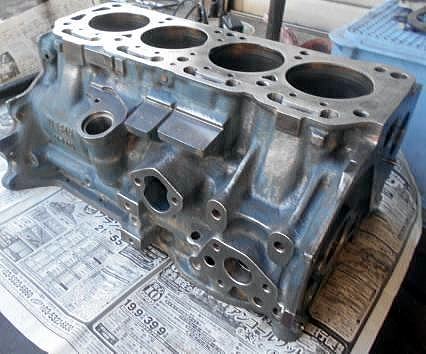 | TS1300レース用エンジンですので、同じ77Φピストンを使うストリートチューンA12-1300とはシリンダーブロック加工に掛ける手間暇がだいぶ異なります。全開走行とクーリングラップを繰り返せるタイムアタック形式走行会と違い、TSレースはスタートしたらチェッカーまでフル全開走行!ペースダウンしてはレースになりません。高油圧&高吐出量Opt'オイルポンプ性能をフル利用するため全てのOIL通路を拡大。標準シリンダーブロックOIL通路は行き止まり、いくら丁寧に洗浄しようとしても行き止まりに溜まったパウダー状のヘドロを取り除く事は出来ません、全てのメクラ栓を取り除き、完璧な洗浄が出来るよう加工するのがTSシリンダーブロック。トップチームのほとんどは毎レースごとにオーバーホールしますし、下位チームでも最低でも1シーズンごとのオーバーホールはしますので、TS1300レース用エンジン新規制作には必須の加工となります。 | ||