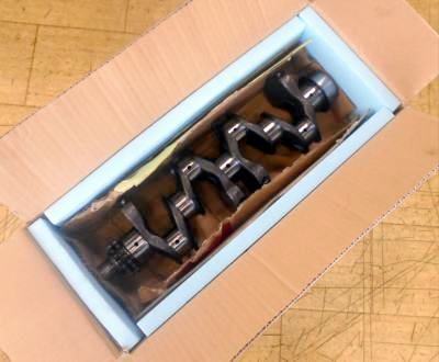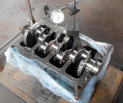 | A12クランクシャフト、曲がり修正、ダイナミックバランス、OIL孔拡大・シズミプラグ取り付けに外注加工依頼。いつも依頼前にチェックします、曲がり過ぎのクランクの場合は破棄し別のを使います、持ち込みの このクランクは大丈夫でした、コレをベースに加工します | ||