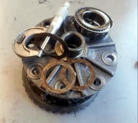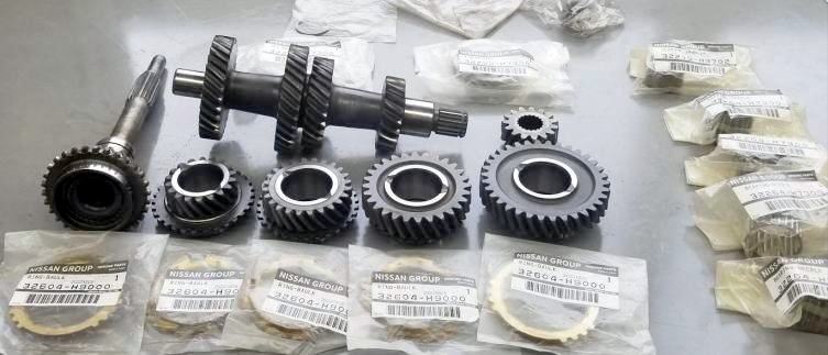 | デフ玉アッセンブリーと日産純正部品8点お預かり。サニトラに乗っての来社でしたから、この持ち込んだデフ玉の素性は解らないと言う事でしょうね? 測定・チェックしてから分解しましょう。 | ||