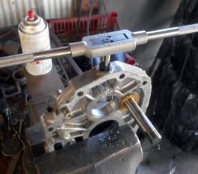 | フロントケース。カウンターニードルベアリングを脱着します、レストア作業性を良くするのがメインだが、皆がやらない面倒な箇所は