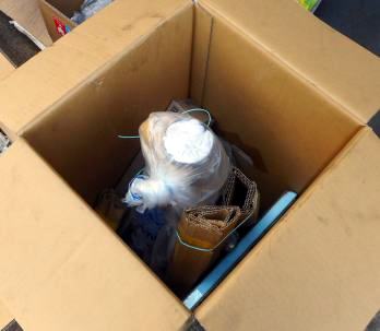 持って来るんじゃあねぇと待たしてる。お客様のクルマページの但し書きがけっこう効いてそう ようやく搭載車両のエンジンが掛かりそうなので梱包を空け積みます。 |