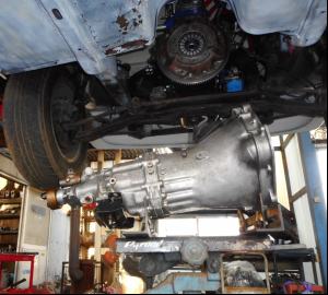| バックランプS/W外さずサニトラに60型ミッション搭載 位置決めし、ホルソー大とホルソー小で穴開けしオムスビ形状の凸凹をリューターで修正、タッチアップペイントで錆止め処理し下廻り完了。ミッション側でバックランプS/W脱着可能にするとフレームへの穴開けが大きくなるため脱着は車内からを選択。派手な改造に見えぬよう日産純正部品フロアー水抜きゴムで蓋をするよう車内から穴開け、この地味なゴムを外しバックランプS/W脱着します。一般自動車整備工場にクラッチ交換依頼出来るようにと、サニトラを全然知らない整備士が新車からこの造りになってると勘違いするよう加工したつもり、出来てますでしょうか? |