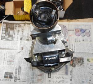 コレがプロペラシャフト傷の元です。5速ミッションには4速ミッションには付いて無い、メインシャフト後方にシャフト振れを防ぐベアリングが付いてますので、何とか持ちこたえてくれの組み立てです。完璧に直すにはリヤケースアッセンブリー交換が必要。リヤOILシールからの滲み、漏れ具合を聞く限りでは乗ってられる状態と想像しますが、何の対策もせずの納品では寂しいでしょうからブッシングを外し多穴仕様にしグリスを詰め込んどきました、場所柄