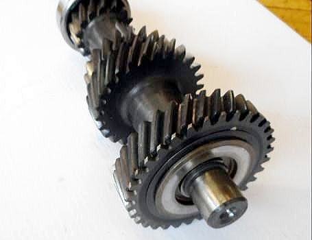 | コレはバネット5速(RS5W60A)のシザースギヤ付きカウンターギヤ。60型5速の最終版でギヤ唸り音対策で付けられた仕様 シザースギヤ付きに代えれば異音が消えるとは言わない、代えても全然変わらないかもしれないが、今回はベアリング破損での交換では無く、ベアリング交換で音色が変わってくれないか?なので、このような異音対策も有るを上げておきます。 |