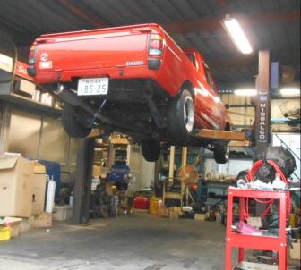 | ピットロードに入庫するサニーに一番最初にやる作業がコレ、TSサニー全車がやってるフード受け、整備性抜群です。コレで作業したら