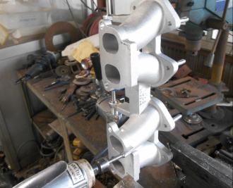 | エンジンブラケットに10mmトオフセット穴開けを施しエンジンを下げる。口で言うのは簡単ですが、実際に行うと、メカポンカバーに当たるなど細々とした加工が必要。仕上がりは大した出来ではありません、特殊技術がいる訳でも有りませんし、特殊工具も不要、やろうと思えば誰にでも出来ますが、誰がやっても労力に合わない膨大な時間が掛かりますので誰もやらないのだと思います。 このINマニは切った・貼った しなくちゃあ付かないのは分かってるピットロードでも、本来は無加工ボルトオンで付くはずの新品ですから、削っては合わせを繰り返し数時間掛けての加工は精神的に辛いです。エンジン搭載のままINマニ合わせをして取り付けるプライベーター達に同情します。因みにこのタコ足のアキレス腱、1番のINマニとEXマニを共締めする箇所、誰に見られても恥ずかしくないようナット単品で脱着できるよう加工しました。エンジン脱着なんてのは簡単、チューンドエンジンはこのような加工に脱着に掛かる以上の数倍の時間が掛かります。特にピットロードの場合、第三者に見られても大丈夫なように加工しなくてはならないので なおさら、パーツが付いてエンジン掛かればイイか?の作業であれば数分の1の時間で済みます。 |