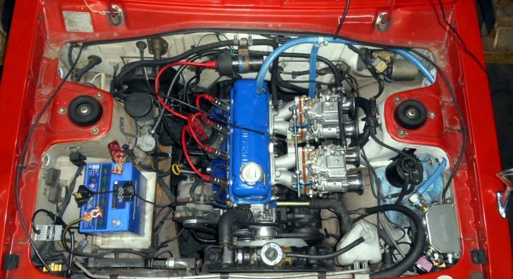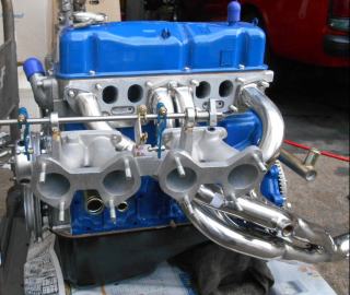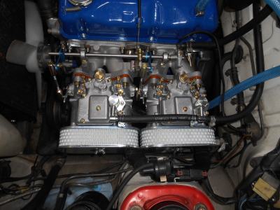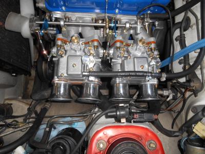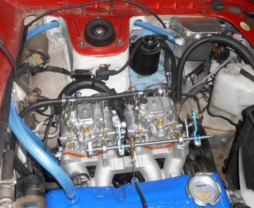 私の夏休み工作ですが 遊び心をサービスしてます A12とA14/A15シリンダーブロック長差は15mm、たかが15mmタコ足が上昇するために フロアーを叩いたり、ミッションメンバーに干渉する箇所を削ったりと取り付けに苦労します。エンジンブラケット穴開けで15mmオフセットは無理だが 10mm前後は下げられるのでピットロードではブラケット加工します。コレもTSサニーのノウハウ、TSは可能な限り下げたいしミッションメンバーとの微調整も出来る、細かい事言うと水平も微調整しキャブ油面変動にも役立ちますから。TSサニーはこのようにスポットライトを浴びる事の無い地味な加工の集大成なのです |