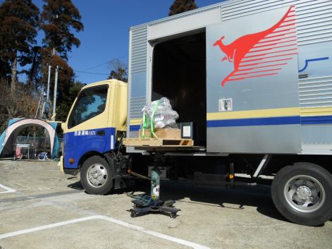ミッションジャッキにコンパネで作ったアダプターを被せた特殊工具?です。西濃運輸の高い荷台に合わせ上下させ10〜20cmほどコンパネの先を荷台に載せれば 後はスライドさせるだけなので力いらず。西濃の若い運チャン達は さぁ!大して重たくねぇから2人で降ろそうぜ!の勢いだが、バカ言ってんじゃあねぇ、若ぇお前ぇ達のパワーはPitroad佐野オジちゃんには無い、オヤジ大丈夫か?と心配されぬよう,、このミッションジャッキ改をフル活用してます。