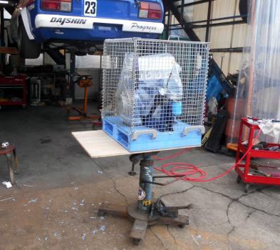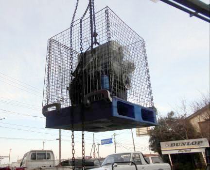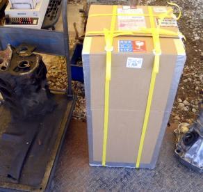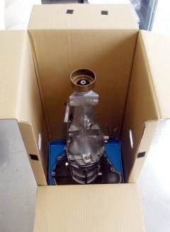 | フォークリフト導入 A型エンジンAssy 約80kg前後、梱包総重量約90kg弱 宅配業者トラックへの積み込み 楽チンです♪ |