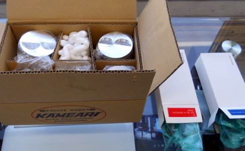 ビッグバルブ装着バルブシートカット加工に出す準備が出来ましたので内燃機加工に出しました 亀有A14改1500cc 79Φ鍛造ピストン、亀有38/32Φ-8mmビッグバルブ |