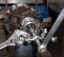 | 分解前にバックラッシュ数値と歯当たりチェック。42年物だけどLSD無しのフルノーマルデフだから どちらもOK!程度良いです。次に分解前の儀式 刻印打ってマーキング。平成サニトラのフルノーマルデフなら まず?チェックしなくても大丈夫、ヤルけどネ。LSD付きはほとんどダメだね、まともに組み上げて有るの見た事無い。AE86デフは整備性良く作られているので簡単・楽チン♪ フェアレディZやスカイラインのR180デフorR200デフも大きくて重たいだけで簡単です。TOMEIパワード工賃表 H型デフ75.000円、R型デフ65.000円を見れば 素人でもH型デフは面倒、大変なんだろうな?が 想像できるでしょう? | ||