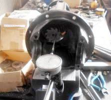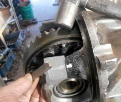 シムを増すか シムを抜くか でベストクリアランスを追及。次にLSDとリングギヤを合体させドライブピニオンギヤとのバックラッシュ数値追及時も同様に