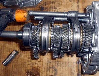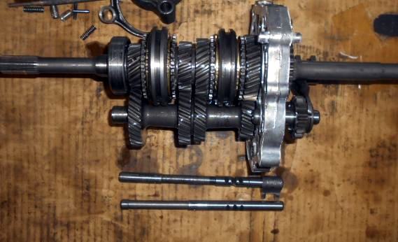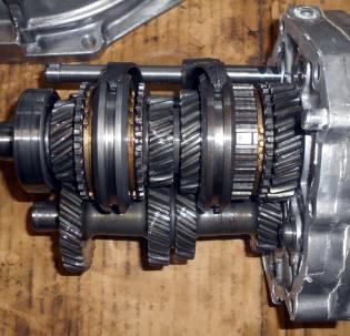 | 2速シフトが入りっぱなしで抜けない、シフトレバーで何とか抜こうとしてもダメだが、ケースを割ってプラスチックハンマーで軽く叩けばウソのように簡単に元に戻る。町乗りで いくらワイルドなシフトワークしようが このようには成らないが、サーキット走行初心者は全員 サーキットならではの火事場のクソ力が出てしまい 何度かはこのように痛い目喰らいます。56型4速は、4速シフトの位置のみ このように成らぬよう最初からストッパーリングが付いてる。1速と3速は押してのシフトなので 力の入れようがないが、2速と4速は渾身の力を込め叩きつけるようシフトするので2速にもストッパーリングを・・・いや 1速と3速にも付けとくか? | ||
