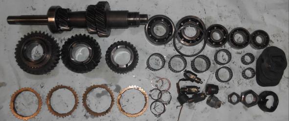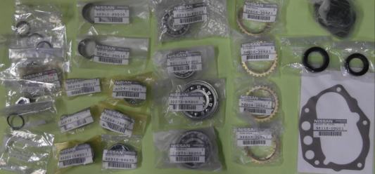 | 71Bミッション クロスギヤ組み込み レストア完成! A型サニーであれば綺麗な新品ミッション専用ダンボールに入れ発送し、お客さんが梱包を空けレストアしたミッションを眺められるんだけど、コレは弊社で搭載しますから せっかくのレストアの全貌をお客さんが見れませんネ、せめてこのように画像をUPしますので 穴の空くほど眺めレストア料金を支払った元をとって下さい(笑) 亀有エンジンワークスから新品シンクロが到着、入荷済みの日産純正部品と合わせ組み上げました。生産廃止部品はメインシャフトに付ける大きなナット1ケと5速サーボシンクロ1ケの2個のみ。ナットは弊社に在庫がありましたので新品に交換、替えられなかったのは5速サーボシンクロのみですが程度良かったので使用に問題は有りません。交換部品はメインのボールベアリングはもちろん、ニードルベアリング、小さなパイロットベアリング、OILシールもフロント、リヤとも新品に替えましたので、作動部分はほぼオール新品。これから10年先まで 気分良く乗って行かれるんじゃあないでしょうか? |
