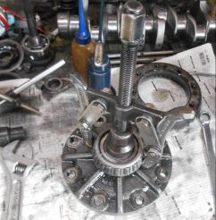 | R180デフの組み立てに入ります R型デフやAE86デフなどはH型デフと比べ整備性が良く楽チンなので好きですが、重たいのがネック。 まずは素人がイジッてはいけない聖域?ドライブピニオンギヤ組み立て。奥めいた所に圧入されてるアウタ・レース抜き取り・圧入取り付け、ベアリングのプリロード調整、他。特に凄い整備技術を要する訳でも専用特殊工具が無ければ出来ない訳では無い。調整ワッシャーt=2.07mmから0.02mm刻みにt=2.57mmまで11種類の中からベストクリアランスが出るまで何度も何度もベアリング脱着を繰り返す忍耐力が有るか?無いか?だけ。アウタ・レース脱着を行わずベアリング交換だけの横着をしてもデフは動く。プリロード調整0.02mmはもちろん0.1mm以上数値が違ってもデフは作動する、理想の数値に近ずける作業を行うか、『まぁ、、イイか?』で終わらすかはチューナーしだい。プライベーターや若人チューナーとは一味違う年寄りチューナーの腕!、、、じゃあ無くコダワリと忍耐力の見せ所。 |
