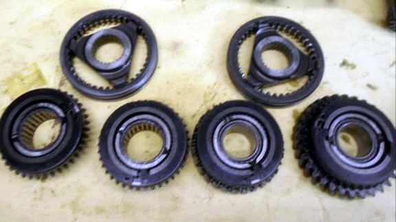 | 2速−5速 カー という異音、シンクロコーンが悪いようです ガラスのミッション直結5速はギヤ欠けが多いので 長く預かった後にギヤ欠けがありオーバーホール出来ません、だとイメージ悪いので 可能な限り 預かってすぐにギヤ欠けが無いか?だけでも点検するよう心掛けてる。ケースを割って見たがギヤ欠けは無さそう、コーンの緩みも無さそうだが この状態だとよく分からないので とりあえず全バラに |