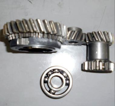 | カウンターB/g破損により各ギヤ荒れ!1速のみ再使用だがチョッと怖い、中古はどれも半世紀物だが コレよりはマシな在庫が有るので 交換して組み上げる予定 | ||