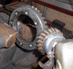 | H型デフならではの数値には表わせない“勘”の作業を2ケ所紹介 リングギヤを付けずにLSD本体をキャリアに圧入。両手で思いっ切り押して収まるようでは緩く、プラハンで軽く叩いて入るくらいがベスト。緩い、キツイの調整はサイドB/g内側に入ってるシム t=0.05、t=0.075、t=0.105、t=0.200、t=0.500を 入れたり 抜いたりして微調整します。多少キツかろうが緩かろうがデフは作動する、物体には何でも許容範囲ってものが有る、マァこんなモンか?は数値には表わせられないメカのモラルのみ、誰も見ていない、腹が減ってる時や、早めに帰宅しなくちゃあいけない用事が有る時はやらない方が良い作業(笑) H150は、コラシプルスペーサーを潰しながらドライブピニオンナットを締め込んで行きます。整備要領書に書いて有る締め付けトルクは14〜30kg-m。数値を見てお解りのようにトルクレンチは役に立たず、長年の経験と“勘”で締め付けるしかありません。締め過ぎると回りが重くなりベアリングが破損しますので やり直し、1度締め過ぎたコラシプルスペーサーは再使用出来ません、新品1ケ1.360円のスペーサーを新たに使います。初心者は2〜3ケ余分に用意して置く事をお勧め。H型デフのコラシプルスペーサーを潰すには写真のようにしないと潰れません、AE86デフと比較すると AE86コラシプルスペーサーが貧弱に感じます、だからAE86デフはソリッドタイプのスペーサーを使うのかもしれません。何はともあれ慣れて無い人には大変、何度も失敗し高い授業料払って ようやくH型デフ スペシャリストに成れるんだと思います。 |